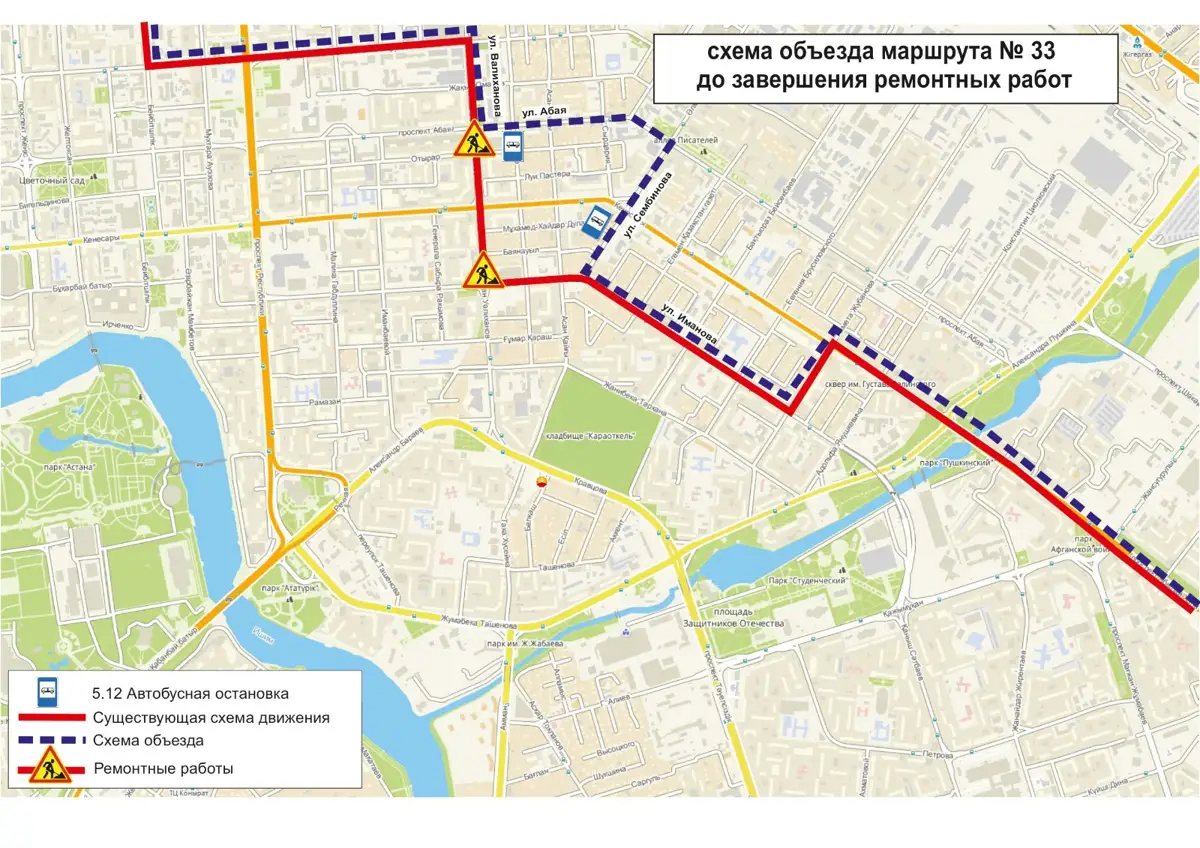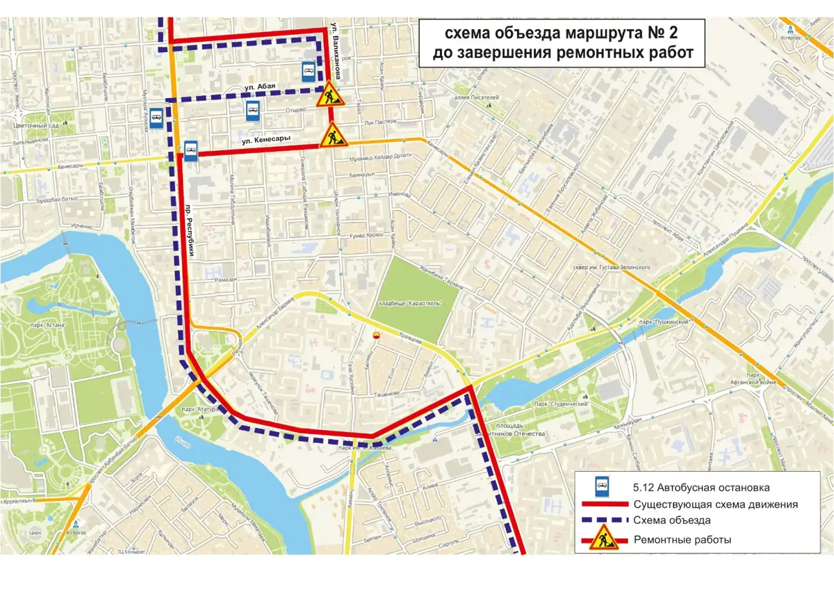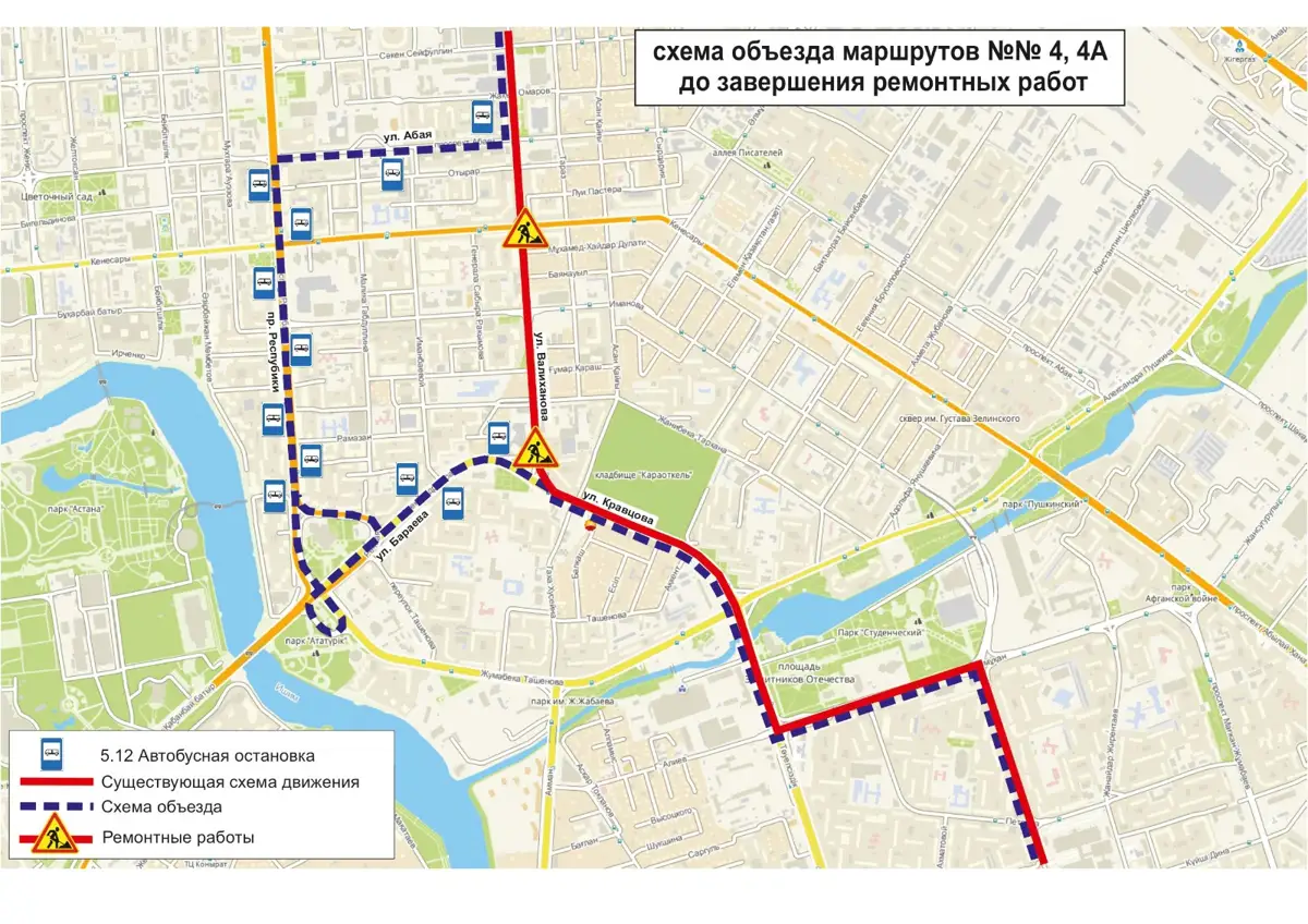 АСТАНА. КАЗИНФОРМ – 13 автобусных маршрутов изменят схему движения в Астане до завершения ремонтных работ, передает МИА «Казинформ» со ссылкой на пресс-службу ТОО «City Transportation Systems».