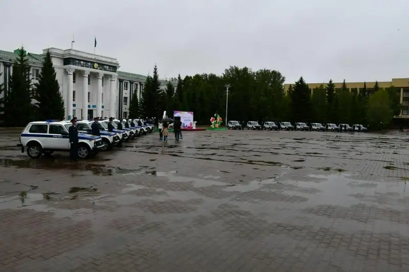 В преддверии государственного праздника Дня столицы аким Акмолинской области Ермек Маржикпаев на центральной площади Кокшетау - имени Абылай хана вручил 38 ключей от новых служебных автомобилей.