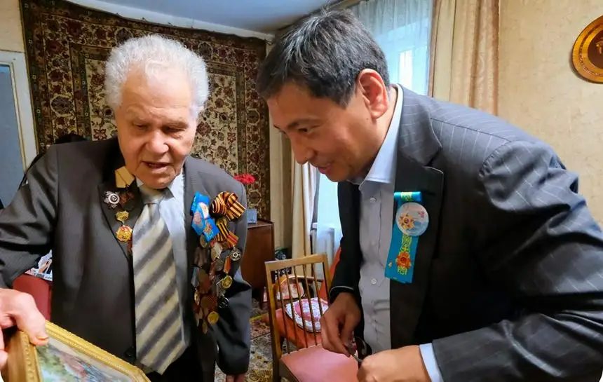 Во время визита к ветерану Шангерею Жаныбекову, которого призвали на фронт в 1942 году военным фельдшером в возрасте 18 лет, Ерболат Досаев подчеркнул, что путь фронтовика – это пример для молодого поколения.
