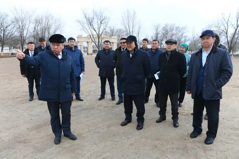 Рабочая группа ознакомилась с благоустройством Центрального парка. Умирзак Шукеев раскритиковал состояние дорог в селе и поручил их отремонтировать.