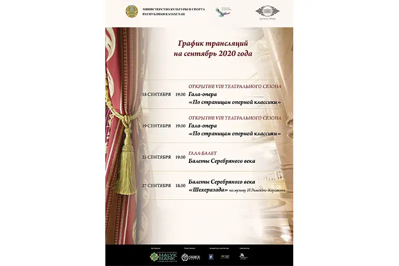 В дирекции театра рассказали, что во второй половине 2020 года и в 2021 году публику ожидают громкие премьеры и грандиозные концертные программы. В начале октября состоится премьерный онлайн-показ оперы «Дон Паскуале» Г. Доницетти, вереницу новинок продолжит эксклюзивный балет «Шесть танцев» в постановке выдающегося хореографа И. Килиана на музыку В.А. Моцарта. Затем театралам предложат долгожданные премьеры: оперу «Любовный напиток» Г. Доницетти и национальный балет в постановке Патрика де Бана «Зов степи» на музыку Т. Кажгалиева, Р. Гайсина и К. Пино-Кантаны.