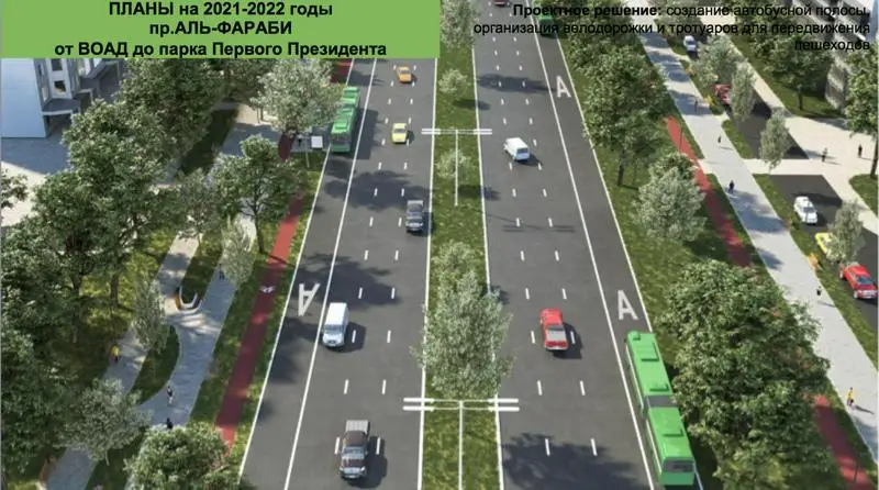 Автобусная полоса и велодорожки появятся по ВОАД и проспекту Аль-Фараби в Алматы