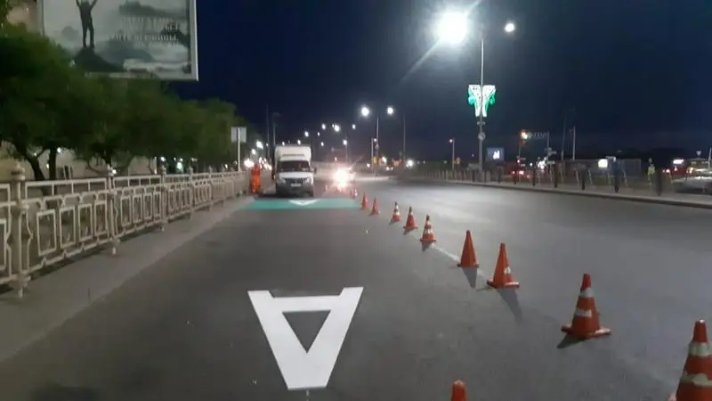 «Принято решение о внедрении пилотного проекта по заполнению выделенных полос общественного транспорта дорожной разметкой зеленого цвета в начале автобусной полосы. Пилотный проект был запущен в целях обеспечения безопасности, концентрации внимания и заблаговременного информирования водителей», - говорится в сообщении Управления транспорта и развития дорожно-транспортной инфраструктуры города Нур-Султан.