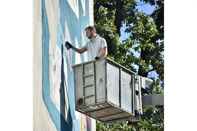 В этот раз в рамках IV Международного фестиваля по монументальному искусству «MURAL FEST», свою работу представил художник из Беларуси - Александр Благий. Он более известен как Kontra из арт-студии TAKTAK.