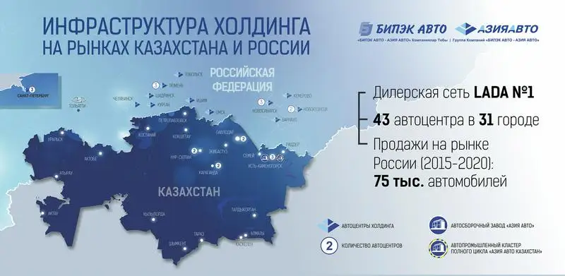Действующая сеть автоцентров на территории России послужит основой экспортной инфраструктуры автопромышленного кластера полного цикла в г.Усть-Каменогорске. В июле 2020 года акционерами холдинга утвержден инвестиционный план, который обеспечит запуск мощностей сварки и окраски кузова в 2021 году.