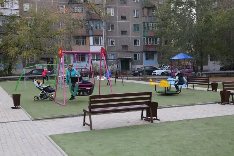 Женис Касымбек осмотрел один из дворов с комплексным благоустройством. Такой категорией охвачено 10 дворов, и основная часть уже сделана. Ещё в 69 дворах предусмотрели стандартный комплект: асфальт, освещение, лавочки и урны. Для 105 дворов, которые были ранее заасфальтированы, выделили средства на освещение и скамейки. В целом по Майкудуку появятся 169 новых детских площадок.