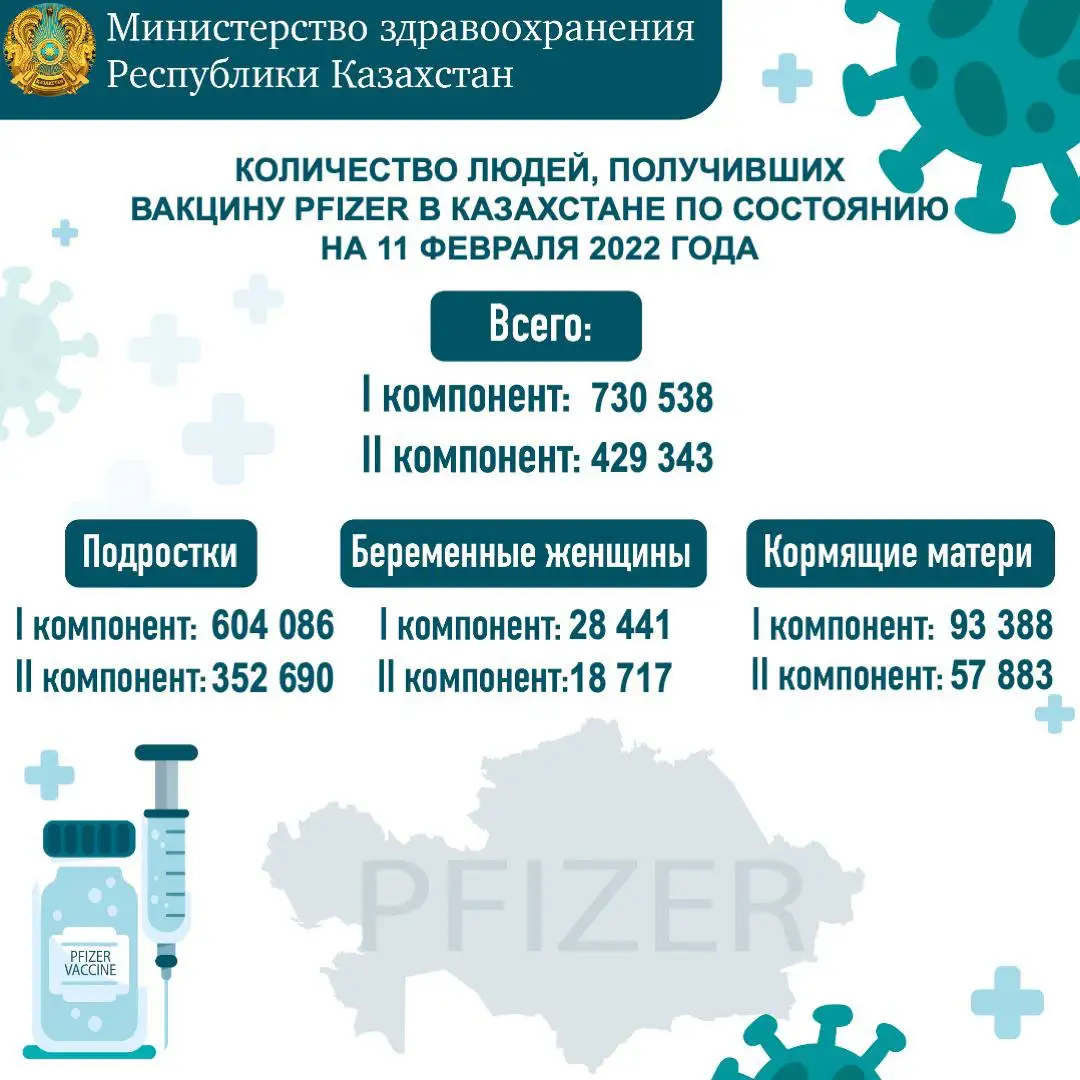 По состоянию на 11 февраля, первым компонентом провакцинировано 9 279 559 человек, второй компонент вакцин получил 8 855 051 человек.
