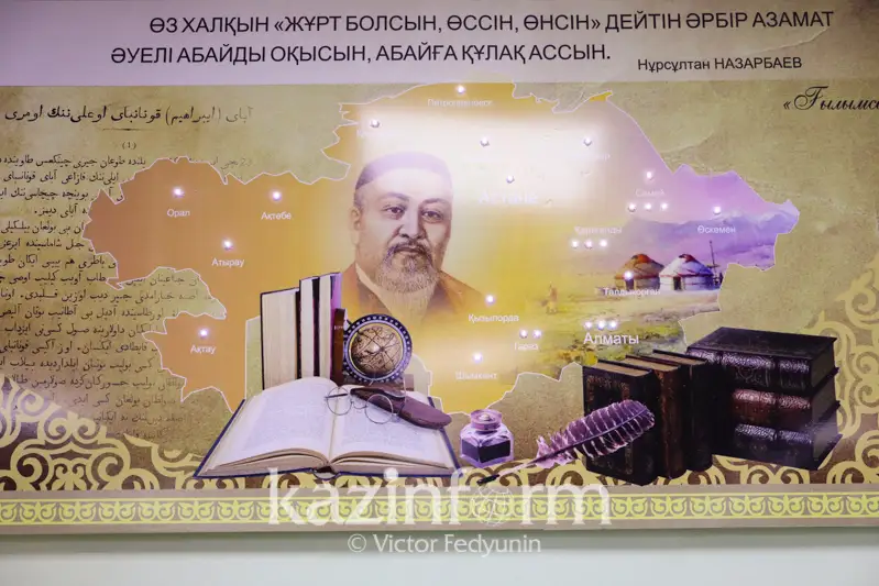 Кроме того, на четвертом этаже Национальной библиотеки представлена выставка к 175-летию Абая. Экспозиция «Абай тағылымы» состоит из 8 разделов, которые знакомят с жизнью и творчеством великого Абая, его мировоззрением и бесценным наследием.