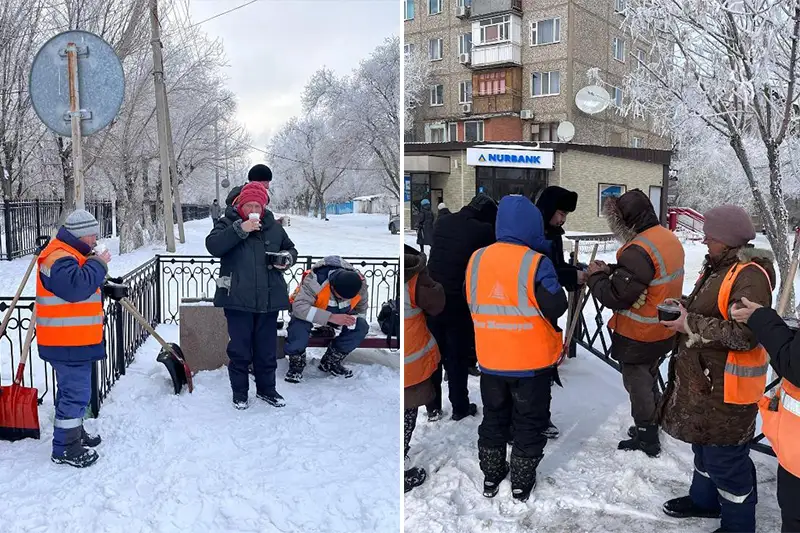 ЖЕЗКАЗГАН. КАЗИНФОРМ – В Жезказгане общественники, волонтёры и неравнодушные жители запустили необычный челлендж. Они обеспечивают горячим чаем и питанием работников коммунальных служб, которые занимаются уборкой снега на улицах города, передаёт корреспондент МИА «Казинформ».