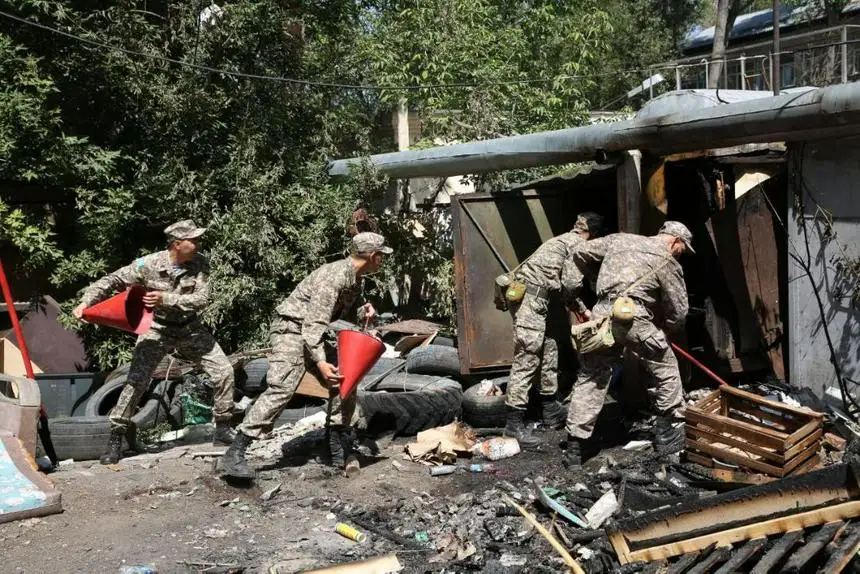 Военнослужащие в составе 10 человек под руководством сержанта Бакытжана Калидолдаева ликвидировали огонь в течение получаса. Ситуацию осложнял порывистый ветер, из-за которого огонь мог перекинуться на соседние постройки.