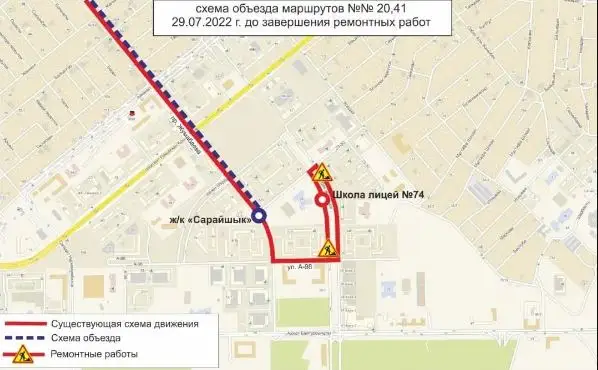 НУР-СУЛТАН. КАЗИНФОРМ - В связи с проведением ремонтных работ, временно изменены схемы движения маршрутов №№ 20, 41, передает МИА «Казинформ» со ссылкой на пресс-службу ТОО «City Transportation Systems».