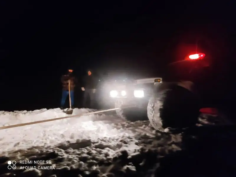 «Около трех ночи, двигаясь по следам от автомашины, в степи мы увидели небольшой дом. Подъехав увидели, что здесь находятся четверо мужчин и одна беременная женщина. В жилище не было ни света, ни воды. Единственное, что нашли мужчины, это дрова и смогли затопить печь. Пять часов они находились в доме. Нами было принято решение по одному человеку на снегоходе отвозить людей в бригаду «Мамырколь». Первую отвезли женщину», - продолжил Д. Елешев.