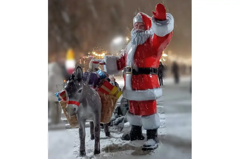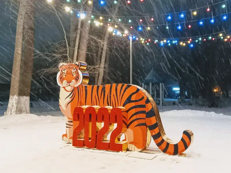 Символ 2022 года - Тигр тоже пользуется популярностью, его смастерила художник паркового управления. На центральном входе посетителей встречает Санта-Клаус с осликом.