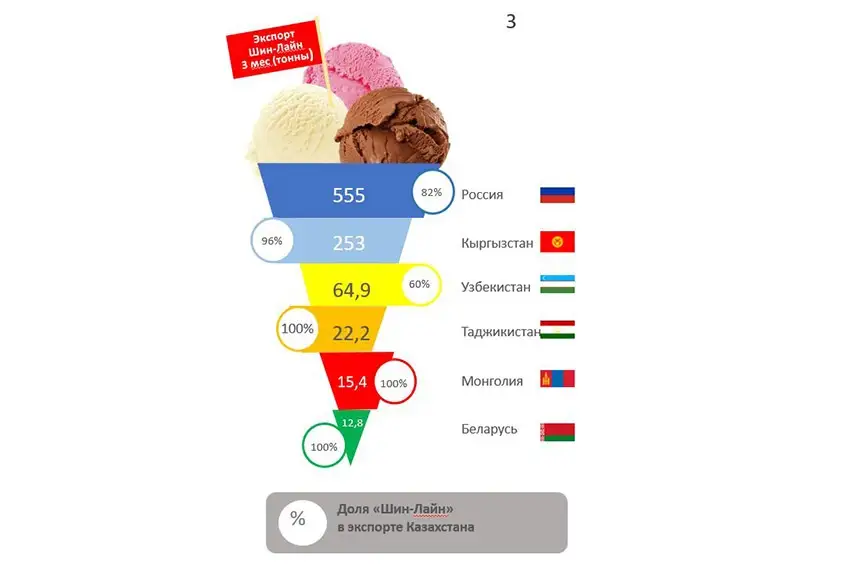 Казахстан увеличивает экспорт мороженого, основным поставщиком на зарубежные рынки остается лидер отрасли «Шин-Лайн»