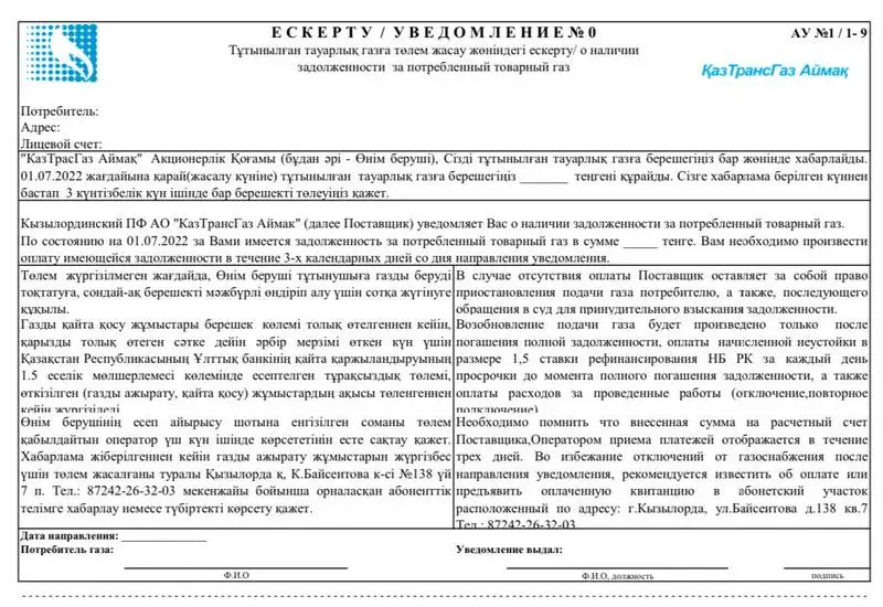 Казахстанцы задолжали за газ более 7 млрд тенге