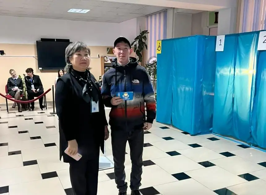 Кроме того, на участке №444 установили фотозону, где каждый голосующий может сфотографироваться на фоне баннера, а также взять в руки надписи с хештегом #Сайлауға бардым.