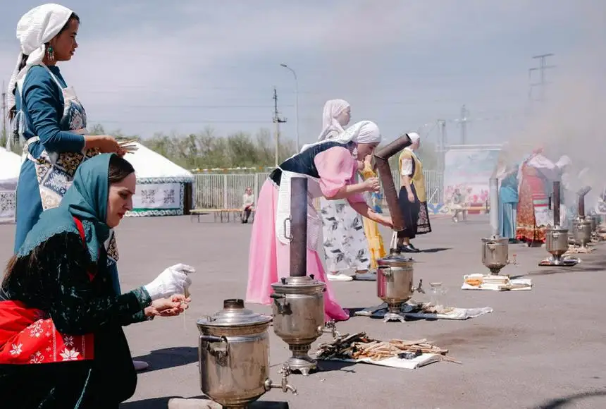 Площадка Дома культуры стала импровизированным аулом, где у каждой юрты кипел самовар, а в казанах жарились пышные баурсаки.