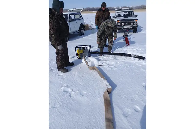 В связи с этим ежегодно, когда подо льдом остается минимальное количество кислорода, ГККП «Производственно-хозяйственное предприятие «ЖасНұр» акимата города Нур-Султана» на закрепленных водоемах - Кояндинском-Астанинском водохранилище, а также на реке Есиль и ручье Акбулак - проводит мелиоративные работы. Так, устанавливается всосной шланг в прорубленную майну, и посредством мотопомпы вода циркулирует из лунок в лунки, при этом водоем насыщается кислородом.