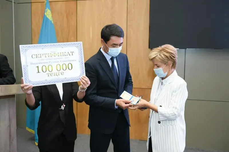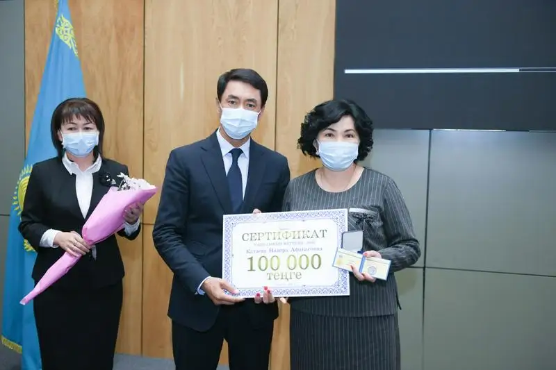 В режиме онлайн с поздравлениями министра образования и науки РК Асхата Аймагамбетова, были награждены победители республиканского конкурса «Лучший педагог-2020». По результатам конкурса, выявлены три лучших учителя Туркестанской области: педагог специализированной школы-интерната имени Нуртаса Ондасынова Мамбетов Самат Алтынбекулы - учитель математики, учитель истории специализированной школы-интерната «Дарын» Молдадосова Алтынай Кайыпкызы, преподаватель специального предмета Кентауского многопрофильного колледжа Анарбаева Диларам Рузиматовна. Они получили специальную медаль «Лучший педагог 2020», им также вручена денежная премия в размере 2 778 000 тенге.