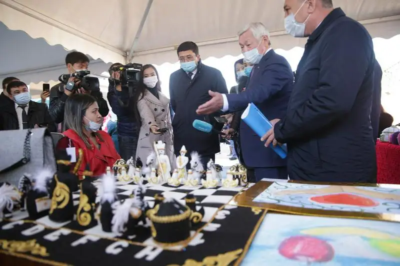 Для гостей торжественного мероприятия была представлена выставка работ жамбылских мастеров декоративно-прикладного искусства.