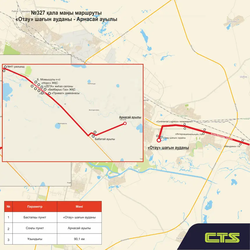 «Хорошая новость для жителей села Арнасай! С 14 ноября будет запущен новый пригородный маршрут № 327. Маршрут будет курсировать сообщением «Микрорайон Отау - село Арнасай». Уверены, что новый маршрут будет удобным и комфортным», - говорится в сообщении перевозчика.
