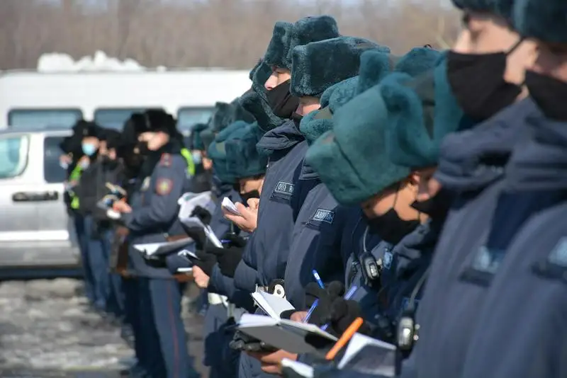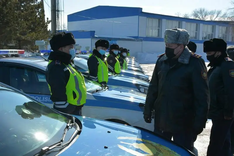 На разводе М. Тулебаев лично проверил состояние автопарка батальона патрульной полиции, проинспектировал исправность носимых видеорегистраторов, уделил внимание внешнему виду и знанию устава полицейскими.