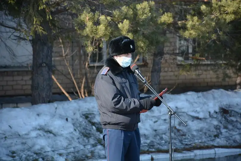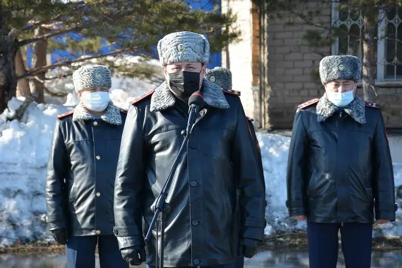 ПЕТРОПАВЛОВСК. КАЗИНФОРМ – На общегарнизонном разводе начальник департамента полиции Северо-Казахстанской области Марат Тулебаев вручил погоны с очередными специальными званиями пятерым офицерам, передает корреспондент МИА «Казинформ».