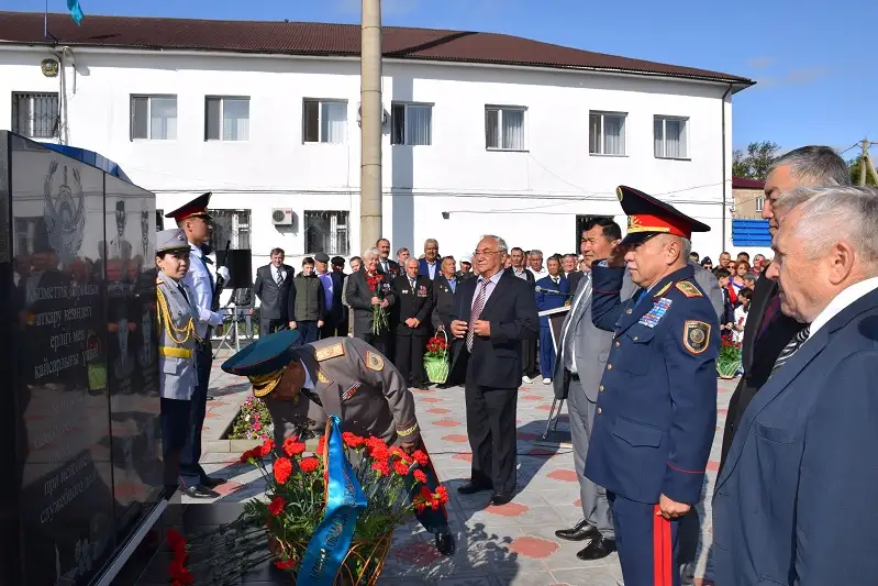 На торжественной церемонии открытия знаменательность этого мероприятия отметили аким района Аманбек Калжанов и председатель Совета ветеранов ОВД и НГ полковник полиции в отставке Даутбек Нургалиев. Обращаясь к гостям и жителям района, выступающие отметили, что новый мемориал станет символом патриотизма, верности служебному долгу, мужества и отваги защитников правопорядка.