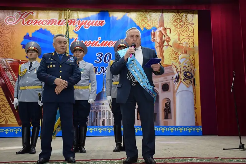 «Особенным моментом церемонии награждения стало вручение знака «Почетный гражданин города Кокшетау» генерал-майору милиции в отставке первому начальнику УВД Кокшетауской области Владимиру Рыбинскому. Символическую ленту и знак по поручению акима области Ермека Маржикпаева заслуженному аксакалу вручил Берик Билялов», - добавили в ведомстве.