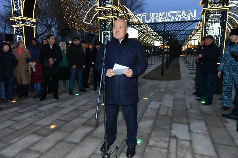«Туркестан - один древнейших городов Казахстана с многовековой историей. Территория нового парка, введённого в эксплуатацию в преддверии Нового года, качественно благоустроена, построены дороги. Уверен, данная зона отдыха станет любимым место горожан и гостей священного города. Спасибо всем, кто пришел сегодня разделить с нами эту радость. Поздравляю вас всех с наступающим Новым годом! Желаю вашим семьям добра, мира и благополучия», - сказал У.Шукеев.