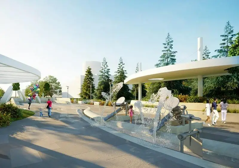 Еще один сухой фонтан появится возле музыкального театра юного зрителя. На этой территории также появятся малые архитектурные формы, инсталляции, велодорожка, теневые навесы. Предусмотрели размещение торговых павильонов, игровых зон и детских площадок.