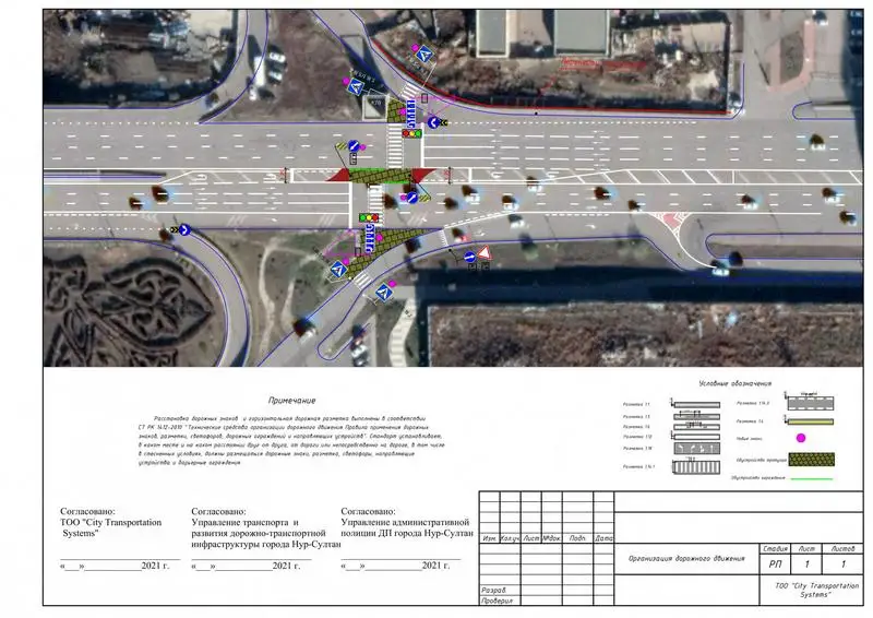 «Планируется установка пешеходных светофорных объектов по улице Сыганак в районе Жусан банка. Также планируется обустроить дополнительные полосы движения для заезда на прилегающую территорию и осуществления беспрепятственных разворотов по улице Сарайшык, в районе улицы Караоткель. Установка пешеходных светофорных объектов позволит обеспечить безопасное и комфортное пешеходное движение согласно градостроительным нормам», - говорится в сообщении управления.