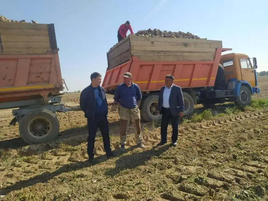 «На сегодняшний день с 160 га собрано 12 946 тыс. тонн, из них 11 076 тонн реализовано сахарными заводами. Всего задействовано более 30 единиц техники. В этом году закупочная стоимость сахарной свеклы составила 30 тыс. тенге за тонну: 15 тыс. тенге платит завод, 15 тыс. тенге в качестве субсидий выплачивает государство. В следующем году эта сумма увеличится до 40 тыс. тенге, завод будет платить 15 тыс. тенге, государство – 25 тыс. Посевные площади культуры намечено увеличить до 10 тыс. га», - сказал Ербол Жиенкулов.