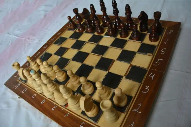 Следует отметить, что Нуржан, с тех пор, как потерял зрение, играет в шахматы только черными фигурами. Кроме того, у Нуржана есть специально для него изготовленная шахматная доска. На все черные фигуры нанесены метки, чтобы можно было их различать. На клетки наклеены кусочки картона, поэтому слепому шахматисту нетрудно различать белые и черные клетки.