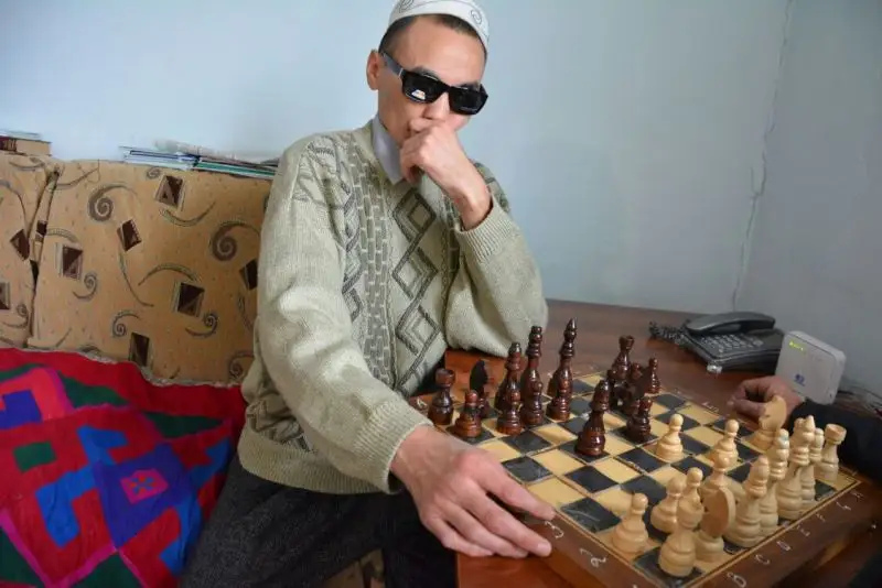 Потерявший зрение сельчанин из Алматинской области выступает на шахматных турнирах