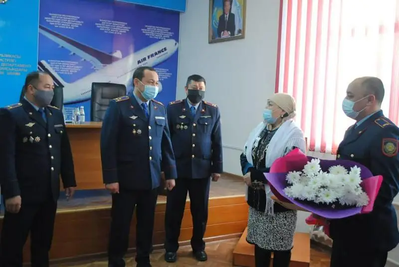 К. Байсетовой вручили цветы и ценные подарки. В свою очередь она выразила полицейским слова благодарности за проявленные внимание и заботу.