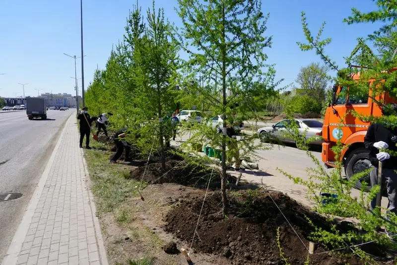 НУР-СУЛТАН. КАЗИНФОРМ - В Нур-Султане запустили экопроект Taza Alem-2021. В его рамках в городе провели субботник и посадили более 50 саженцев деревьев по шоссе Коргалжын. Об этом передает МИА «Казинформ» со ссылкой на официальный сайт столичного акимата.