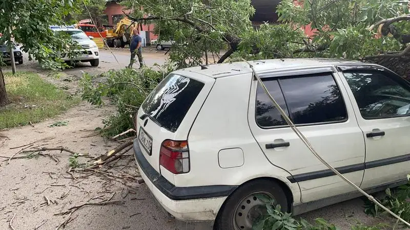 Сильный ветер в Алматы повалил деревья и повредил несколько авто