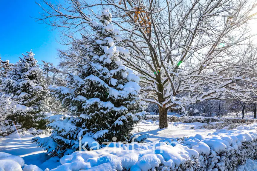 АЛМАТЫ. КАЗИНФОРМ - В Алматы сохраняются морозы, а недавно выпавший снег еще не растаял. Как выглядит заснеженный город – в репортаже фотокорреспондента МИА «Казинформ».