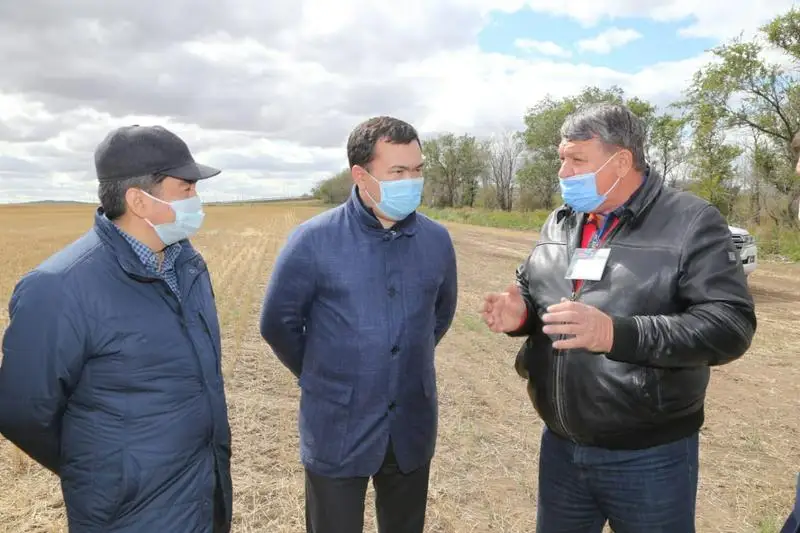 Женис Касымбек в ходе рабочей поездки в Осакаровский и Нуринский районы встретился с аграриями и обсудил, как идёт уборка урожая, какая необходима помощь в связи с непростой эпидемиологической ситуацией.