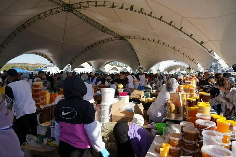 «В Нур-Султане ярмарка, которая проходит в ясную погоду, радует людей. На ярмарку привезли 45 тонн конины. У нас, к сожалению, есть так называемая зона вакцинации, в которую входит Восточный Казахстан. Поэтому мы не можем продавать говядину, баранину. После вакцинации скота их ввоз не разрешается. Астанчане хорошо покупают конину. Также мы привезли 40 тонн меда, 100 тонн картофеля. Наша главная цель - не зарабатывать деньги, а предлагать свою продукцию, бренды региона астанчанам», – сказал заместитель акима Восточно-Казахстанской области Ержан Нурбаев.