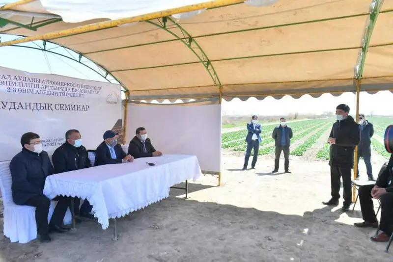 Вместе с тем, Умирзак Шукеев ознакомился с ходом работы крестьянского хозяйства «Сабыр», где активно реализуют проект по получению 2-3 урожая с одной площади и встретился с рабочими. Засеяв поля капустой, аграрии готовятся собрать первый урожай. Они также поделились тонкостями эффективности этого проекта. После сбора первого урожая они приступят к посеву арбузов. Местные крестьяне, поняв эффективность данного проекта, уже получают доход до 8 млн. тенге с 1 га в год.