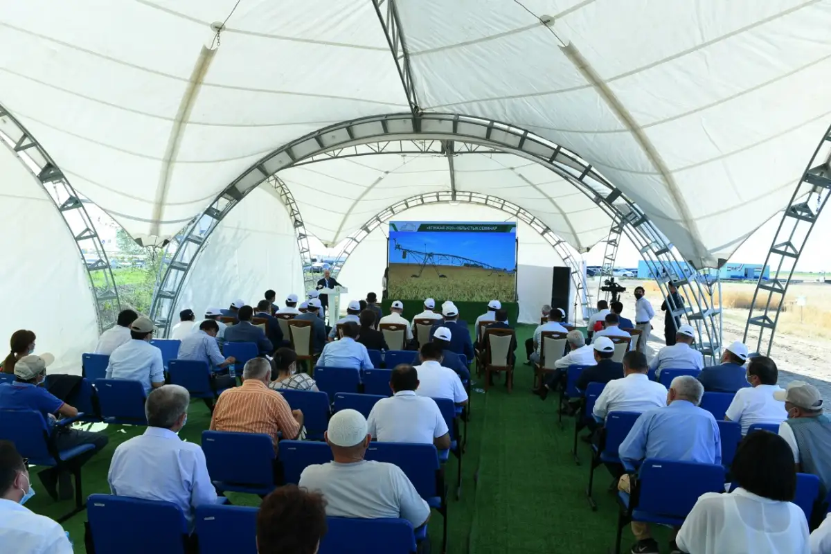 Семинар проводится в направлении внедрения современных передовых технологий с укрупнением агроформирований. В рамках данного направления на территории города Туркестан 1458 хозяйств, объединившись в 9 кооперативов, планируют внедрить на 11 тыс. га технологии дождевального орошения.
