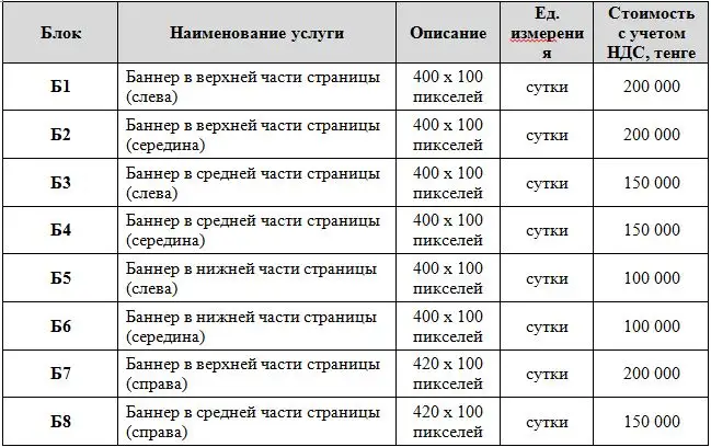 Условия и порядок предоставления интернет-площадей, указанные в настоящем информационном сообщении, могут корректироваться в соответствии с требованиями уполномоченных органов Республики Казахстан.