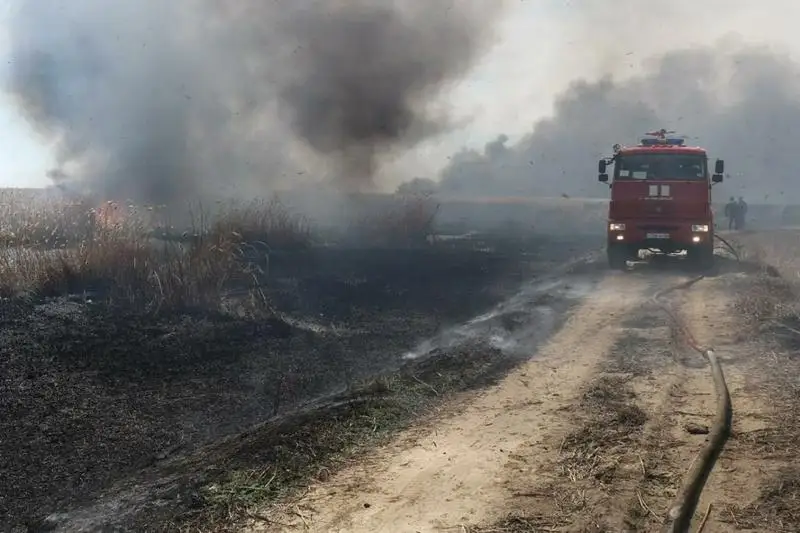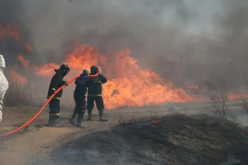 АТЫРАУСКАЯ ОБЛАСТЬ. КАЗИНФОРМ- В Атырау потушить пожар, вспыхнувший в камышовых зарослях в окрестностях города, мешает штормовой ветер, передает корреспондент МИА «Казинформ».