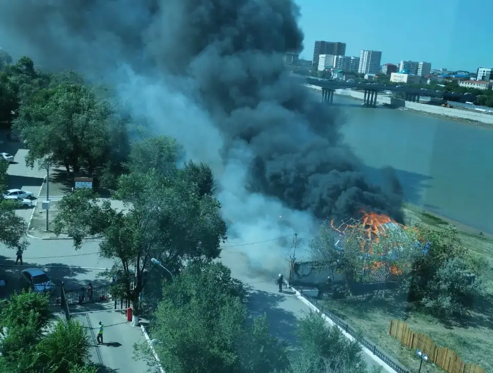 АТЫРАУ. КАЗИНФОРМ – В Атырау сгорело летнее кафе на набережной реки Урал, передает корреспондент МИА «Казинформ».