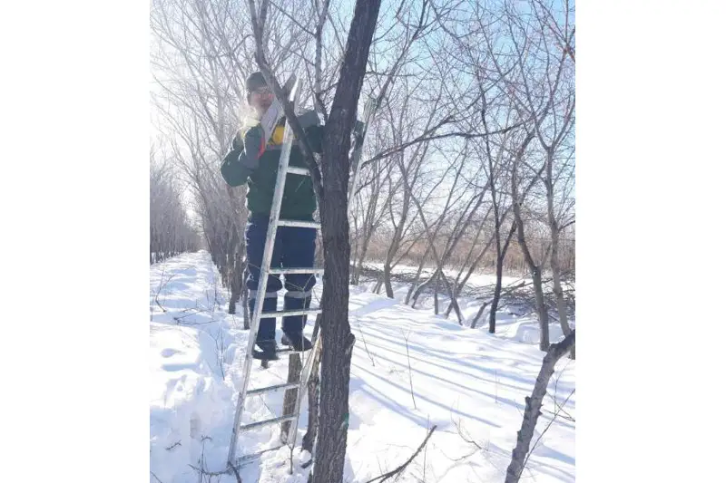Зайцы зимой являются основными вредителями яблонь и других плодовых пород деревьев зеленого пояса, они объедают кору стволов и скелетные ветви, особенно у молодых деревьев. Защита плодовых деревьев от грызунов – одна из первостепенных задач на зеленом поясе. Если своевременно не принимать меры, то грызуны могут стать причиной преждевременной гибели дерева. В целях защиты деревьев с наступлением зимнего периода ТОО «Астана орманы» обрабатывают лесонасаждения отпугивающими грызунов препаратами (креолин). Еще одним видом работ является формирование крон деревьев под естественный вид, который будет выполнен на 155 129 деревьях в восточной части столицы.