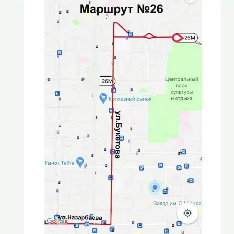 Автобус №26М на участке от улицы Н.Назарбаева до улицы Егемен Казахстан будет двигаться по улице Букетова.