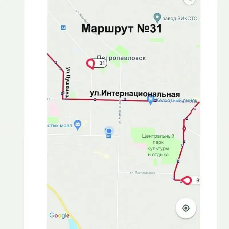 Маршрут №31 теперь в обоих направлениях двигается по улице Интернациональной. Улицы Букетова в новой схеме маршрута нет.