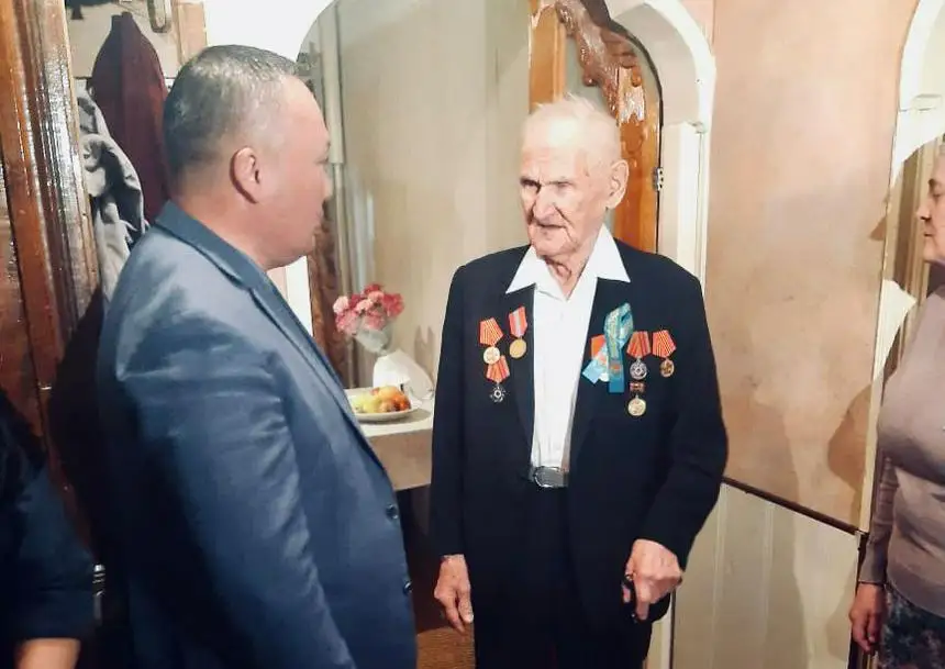 Фронтовика Виктора Долганова поздравил первый заместитель акима Жамбылской области Нуржан Календеров, сообщает пресс-служба акима Жамбылской области.
